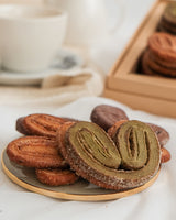 24pcs of assorted vegan palmiers featuring our signature flavors: Salted Caramel, Matcha, Chocolate and Hot Pepper. This is ideal for brightening up your afternoon tea time or as a gift for loved ones.
