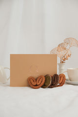 12pcs of assorted vegan palmiers featuring our signature flavors: Salted Caramel, Matcha, Chocolate and Hot Pepper. This is ideal for brightening up your afternoon tea time or as a gift for loved ones.