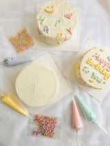 Unleash your inner artist with our DIY Mini Cake Kit! This fun and creative kit includes everything you need to design your very own mini masterpiece. This kit includes 3 frosting colors and a packet of colorful sprinkles to add your personal touch. Perfect for parties, family fun, or a sweet solo project, this kit is a delightful way to enjoy baking and decorating.