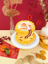 Finished with golden-yellow frosting, playful festive details, and auspicious accents, this cake turns tradition into an unforgettable interactive moment. The burnaway reveal creates excitement and meaning, making it perfect for family gatherings, gifting, or welcoming the new zodiac year in a memorable way. A beautiful blend of celebration, symbolism, and sweet surprise.